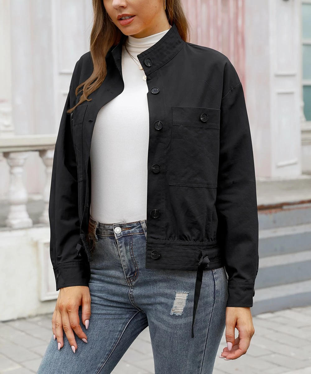 Add chic style to chilly days with this button-front jacket designed with convenient chest pockets and breathable cotton fabric.