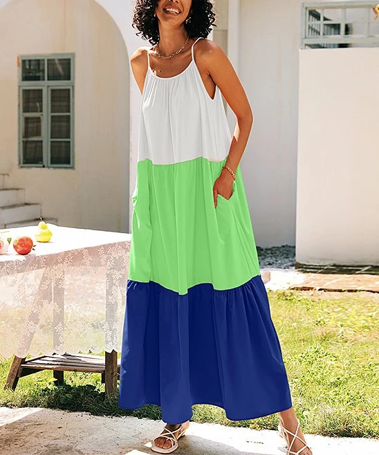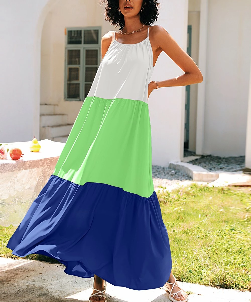 Showcase your shoulders in this charming color block dress featuring a billowing fit for maximum breathability on warm-weather days.
