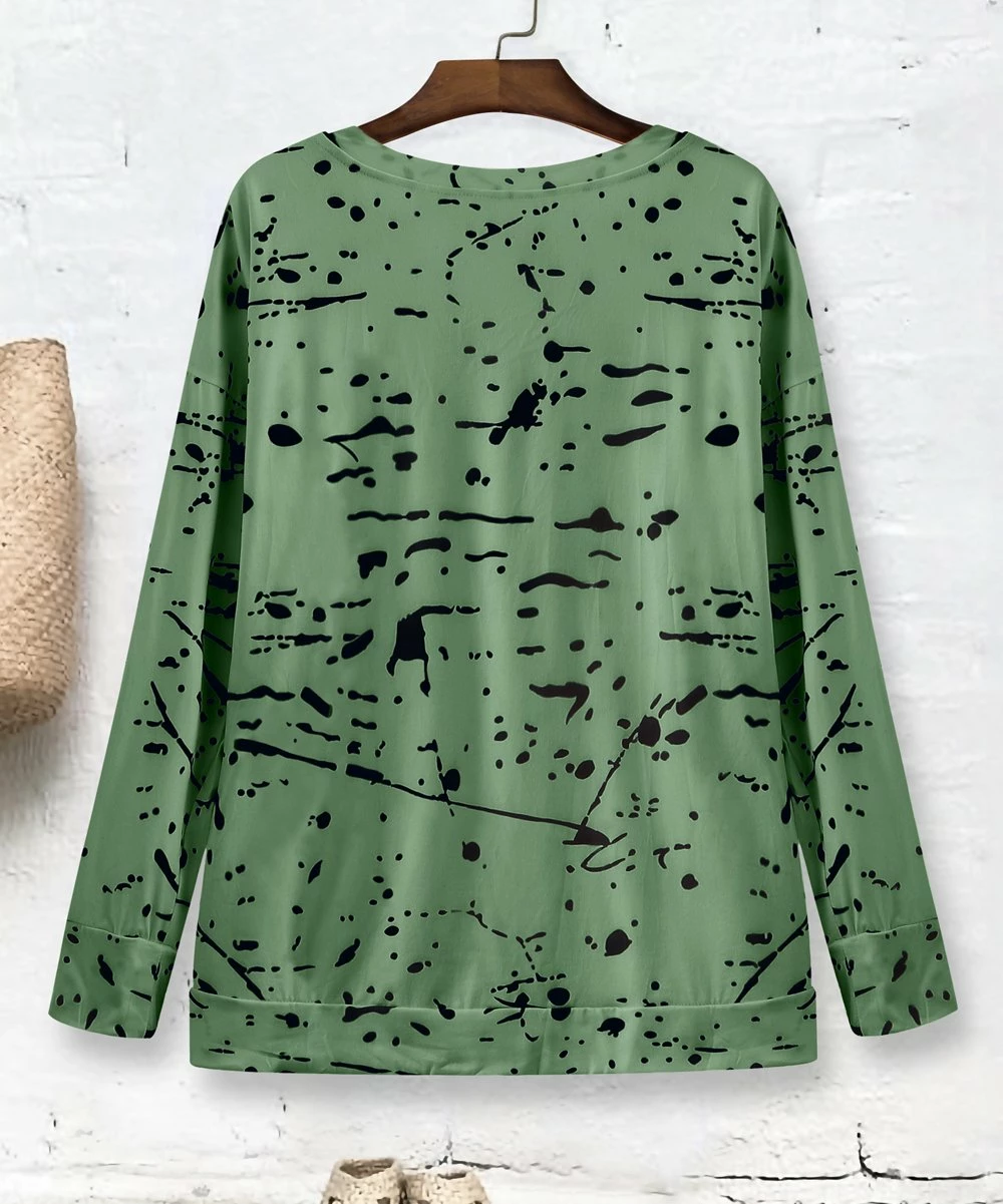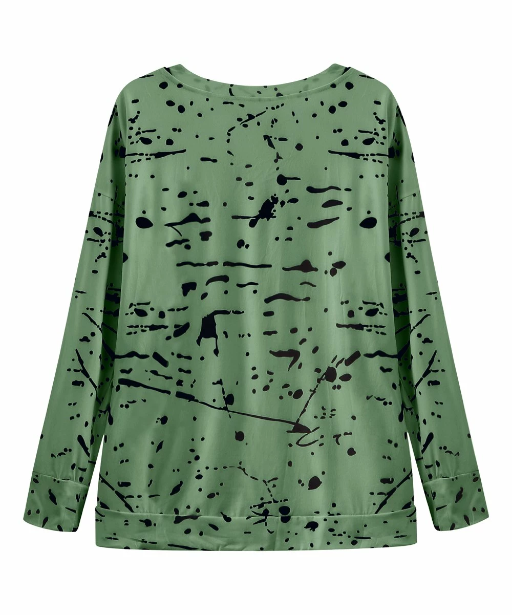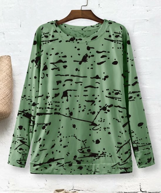 Craft your casual closet with this long-sleeve crewneck top featuring comfortable knit fabric and a unique splatter paint pattern. Pair with jeans, leggings or joggers depending on your mood.