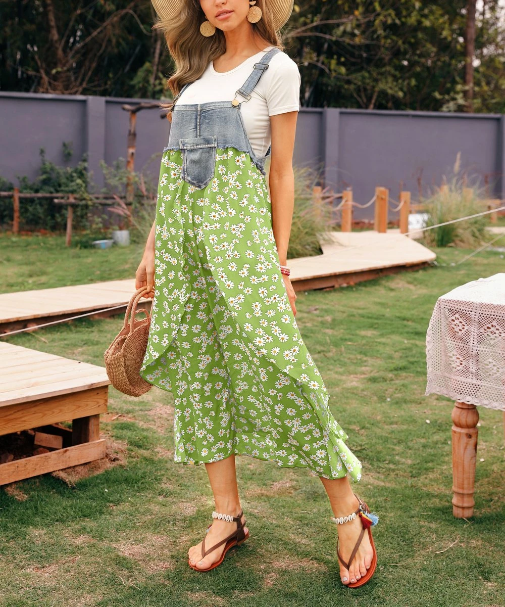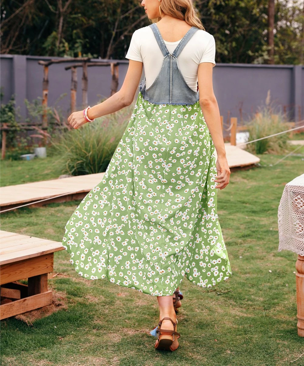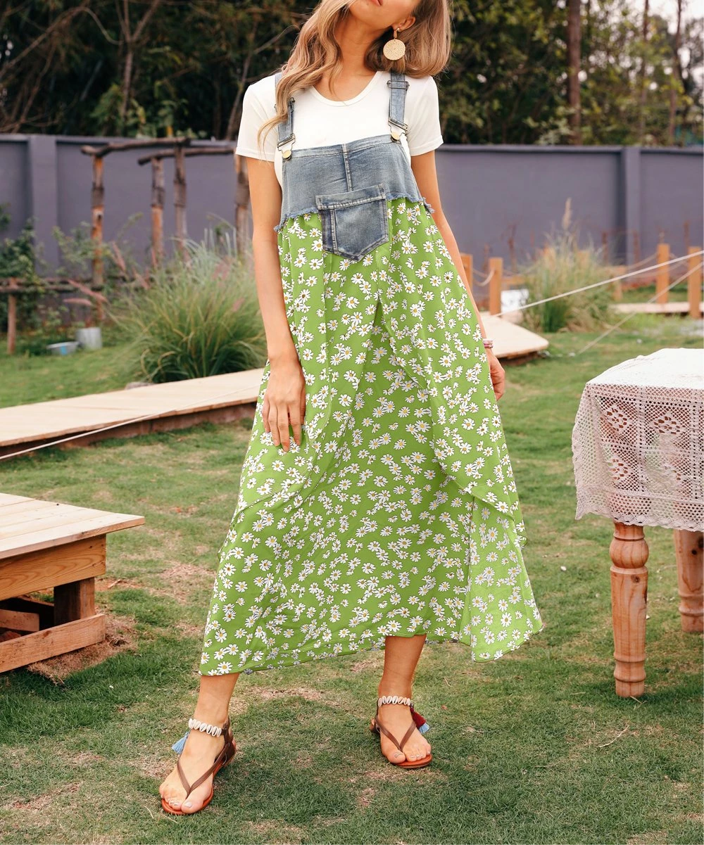 A whimsical suspender style lends a modern flourish of cool to this maxi dress in a staple print.