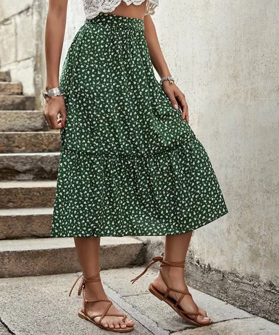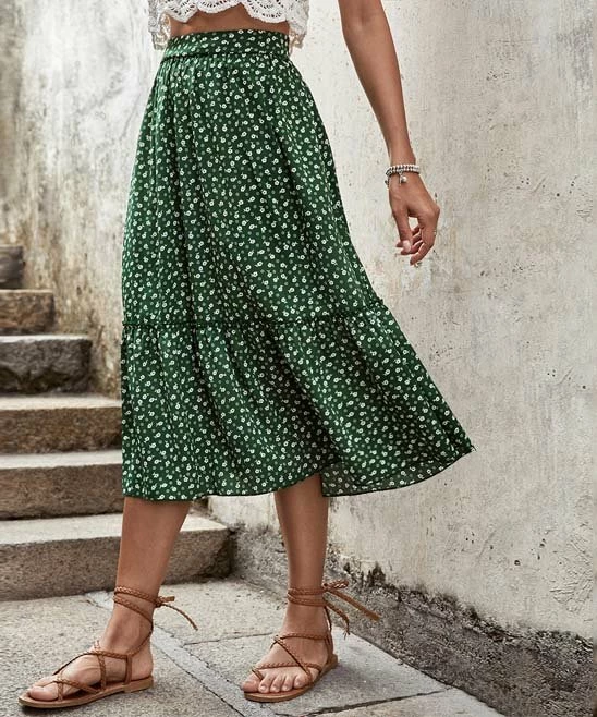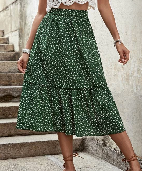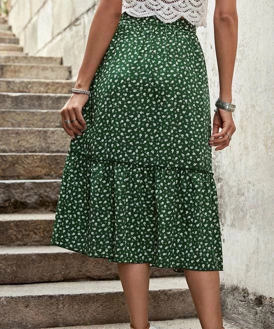 Put a feminine finishing touch on your favorite tops with this skirt that flaunts a romantic floral print and ruffly trim. Elastic delivers comfy stretch through the waist.