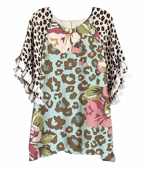 Take on the day in this easygoing cape-sleeve top flaunting big cat print, vibrant florals and layered, fringe hem sleeves that help you standout among the crowd.