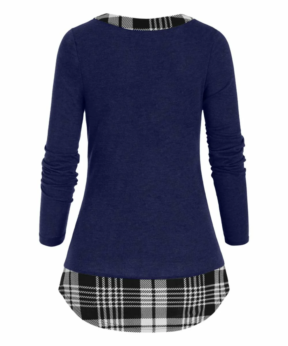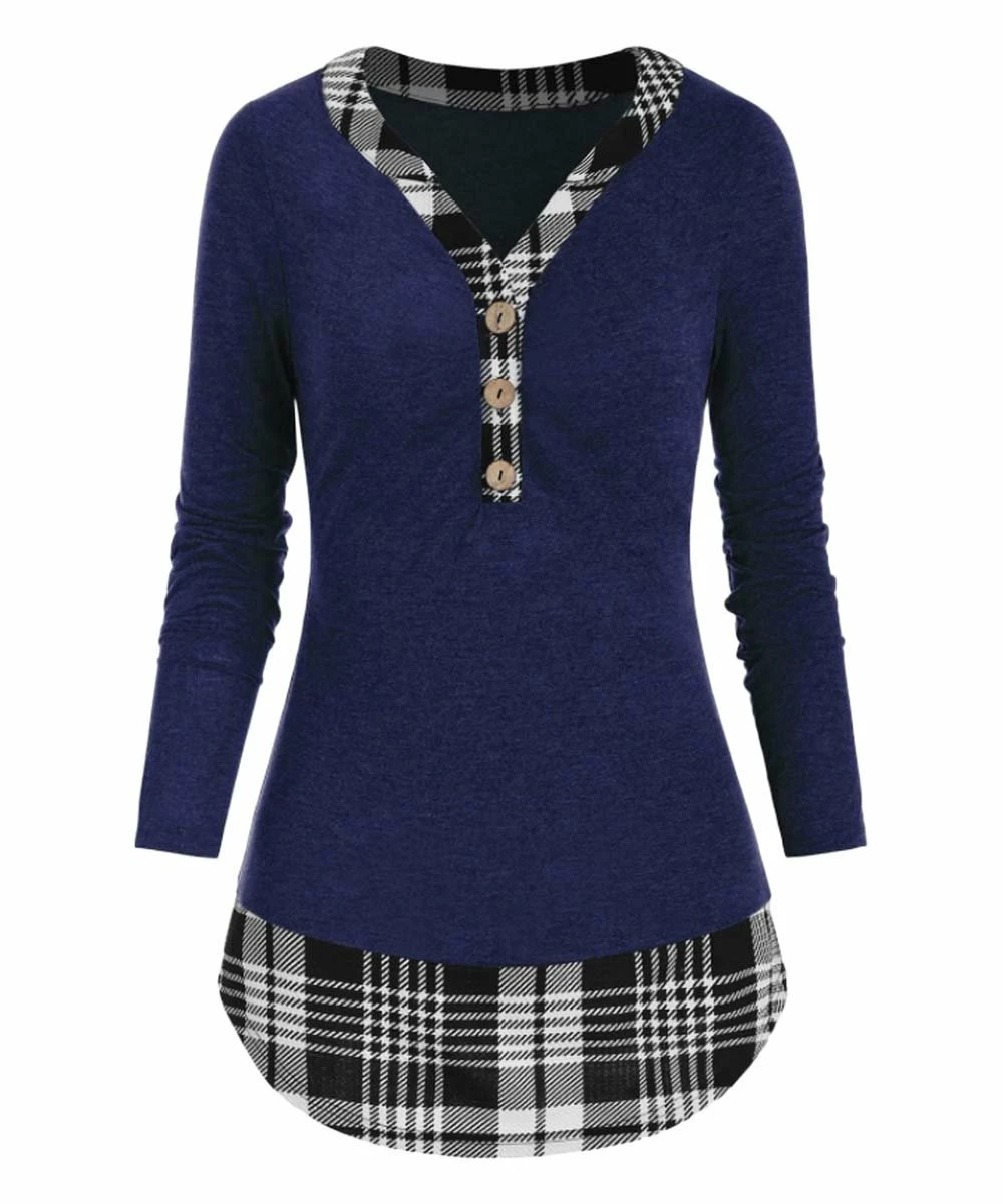Crafted with a classic V-neckline and plaid-patterned accents, this lightweight tunic pairs easily with your favorite pair of jeans or leggings.