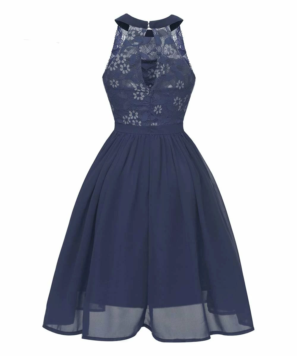 Radiate retro vibes in this dress that features a fitted lace bodice and flared skirt. A halter neck adds a touch of polish, while a keyhole back lets in a little breeze.