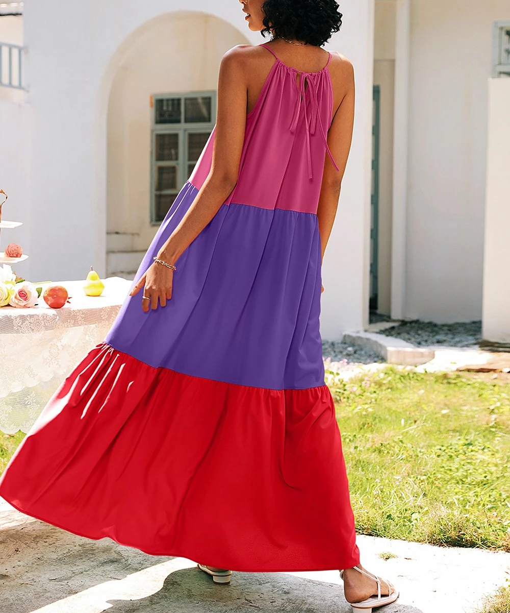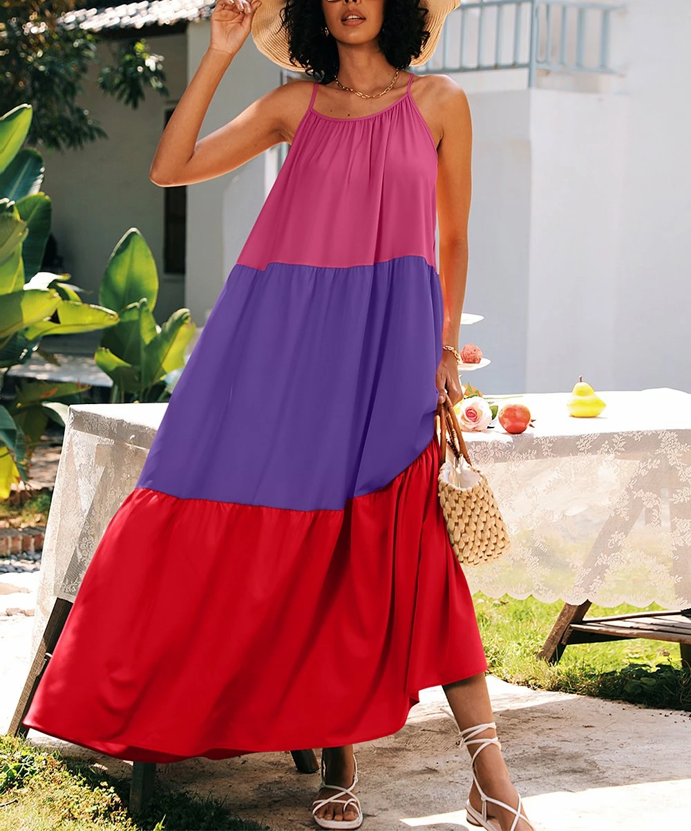 Showcase your shoulders in this charming color block dress featuring a billowing fit for maximum breathability on warm-weather days.