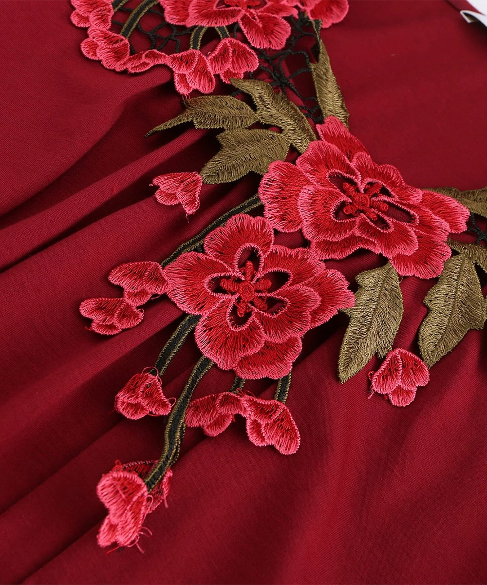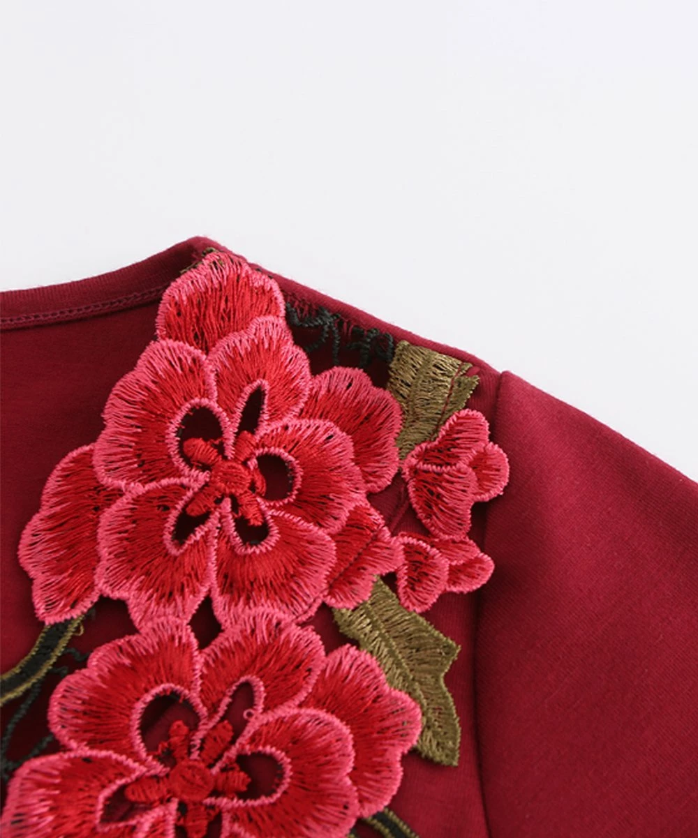 This long-sleeve top is sure to stun with its embroidered, floral design and flowy, tiered structure.